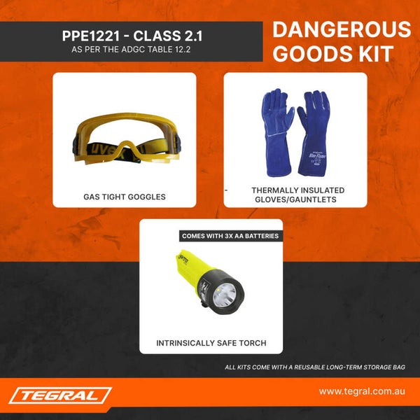Our Dangerous Good Kits, also known as Dangerous Goods Bags comply with Table 12.2 of the Australian Dangerous Goods Code for the relevant classes of dangerous goods. If you require a Self Contained Breathing Apparatus, please see here, DG Bags include the following: